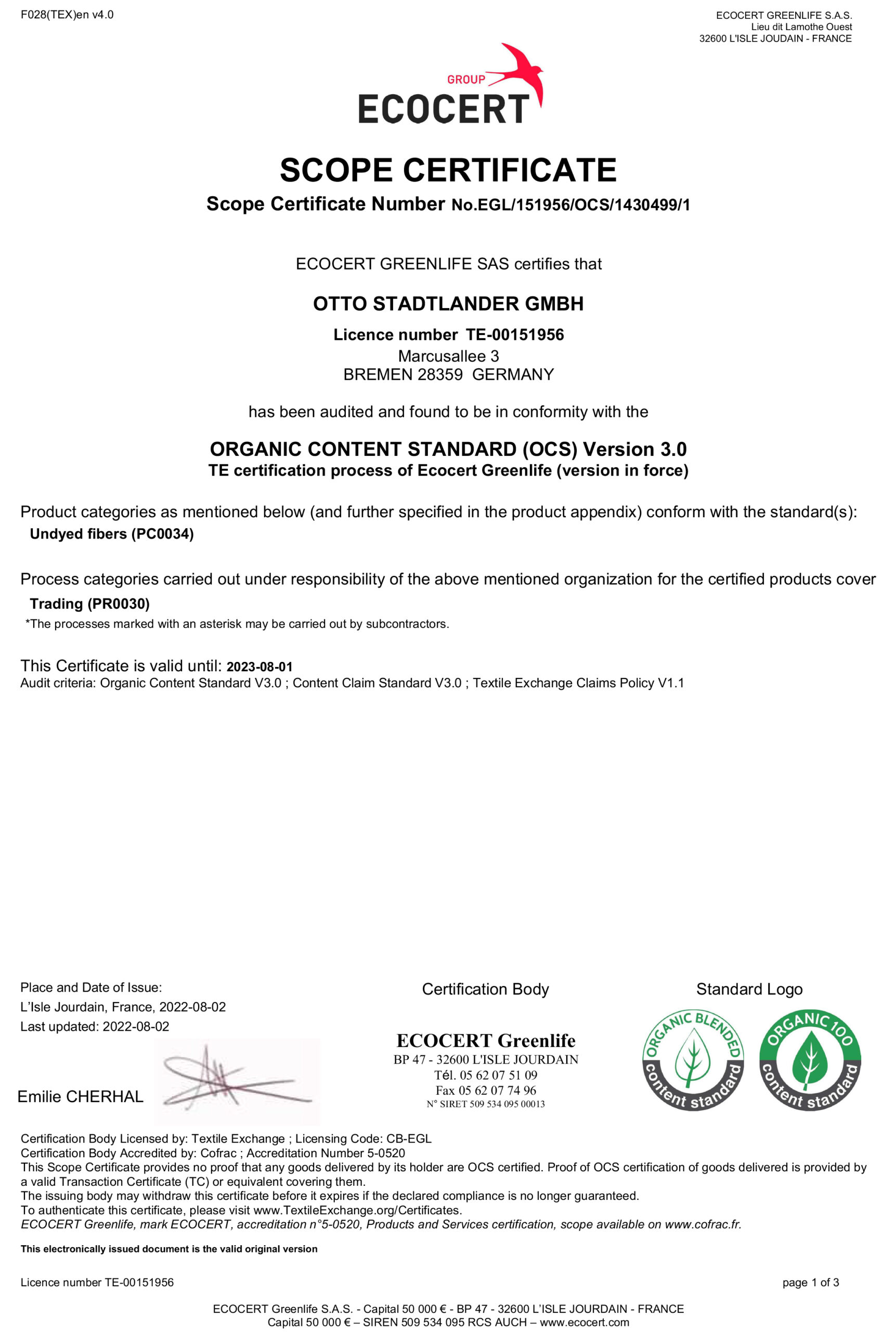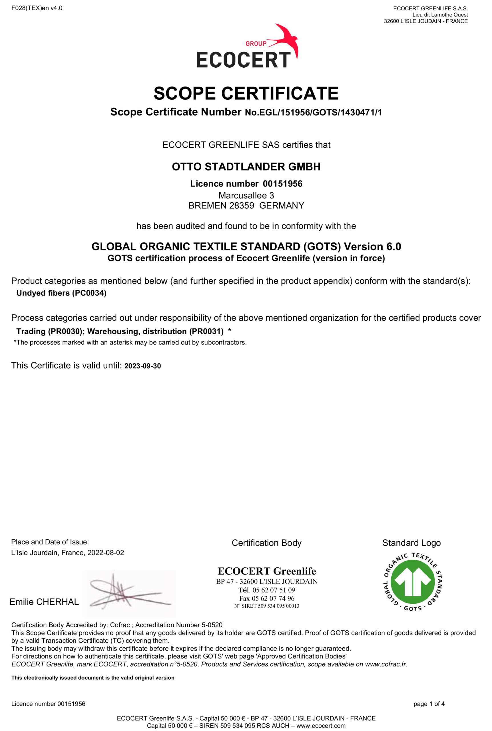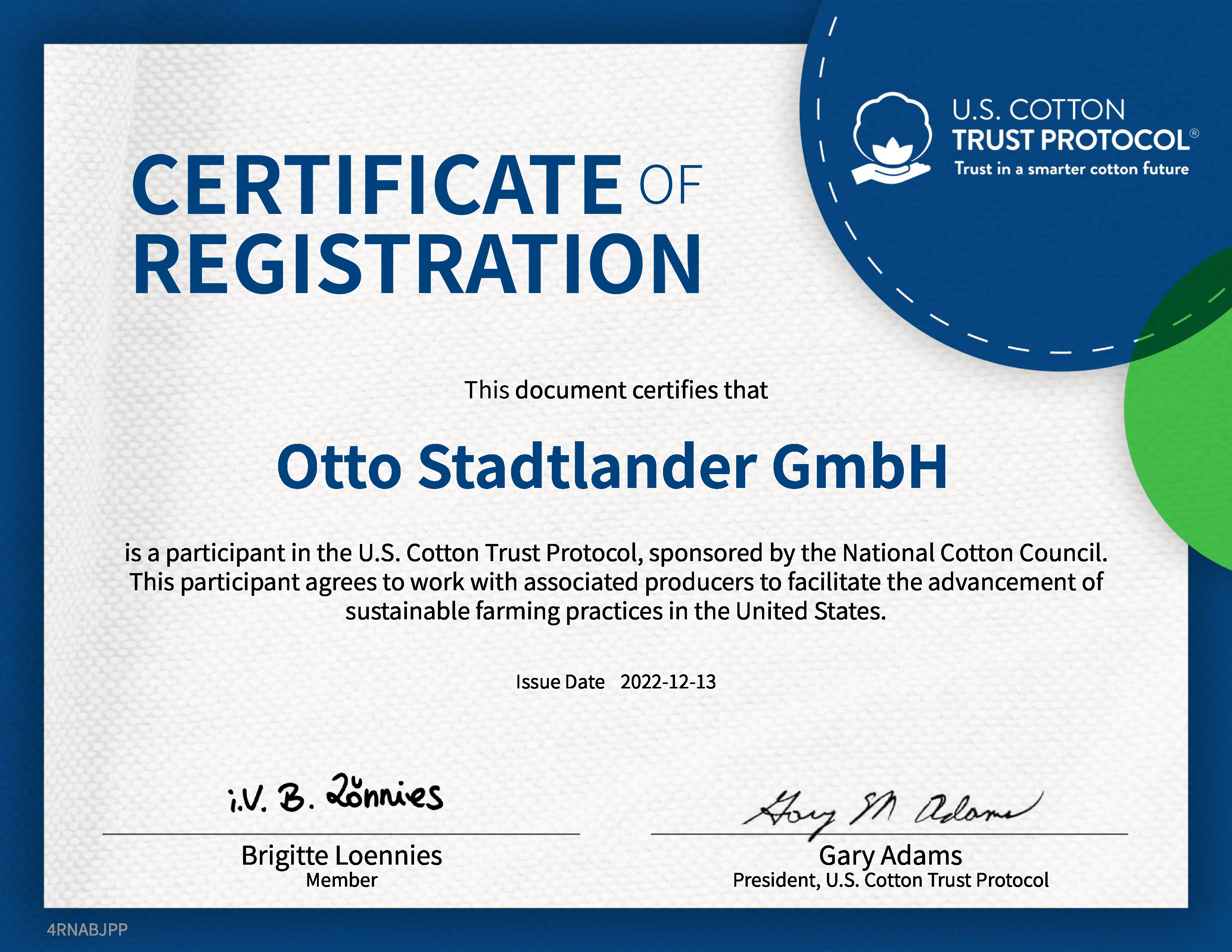 The CEA certification permits the Otto Stadtlander GmbH to trade Egyptian cotton worldwide and certifies that the products identified by the trade Mark contain 100% Egyptian Barbadense cotton.